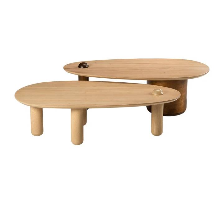 As formas tubulares graúdas e desarmônicas das mesas de centro Comfy encorajam nosso imaginário para apostar em móveis que proporcionem para o décor energias positivas através de composições dinâmicas que são refinadas e brincalhonas. A versão alta possui base revestida em lâmina natural de madeira cinamomo. A versão baixa possui pés produzidos em madeira maciça. Ambos os tampos são revestidos em lâmina natural de madeira cinamomo.